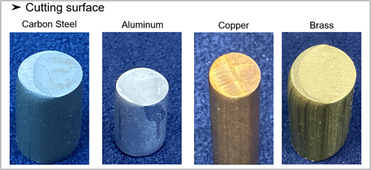 Conventional cutting mechanism cuts materials at a speed from “0”, resulting in a slanted cut surface. However, when cutting with this mechanism, the cutoff surface is nearly flat and smooth.